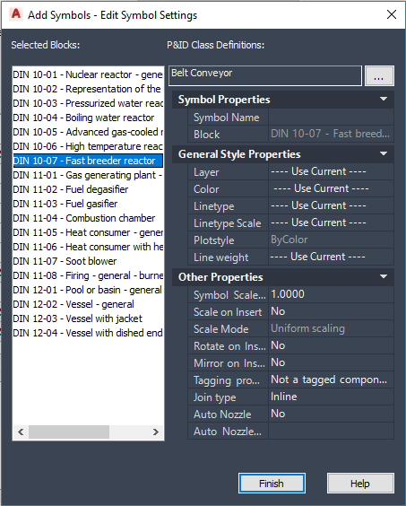 - In the Add Symbols - Edit Symbol Settings dialog box, you assign each block to a component and name it. As you work through the list, the ones that have been assigned become gray. Do the following: