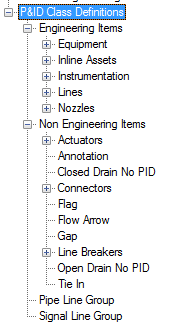 - In the Project Setup tree view, expand P&ID Class Definitions.