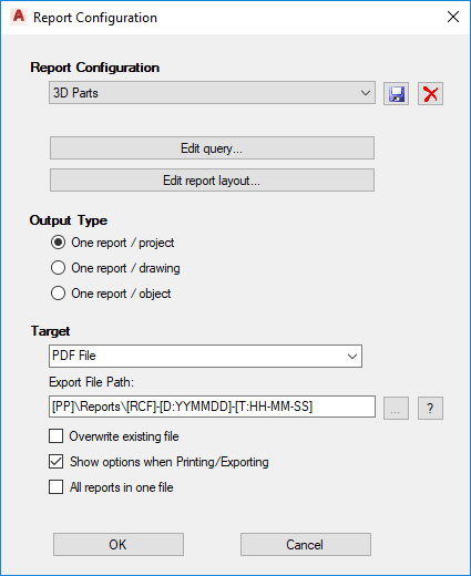 - In the Report Configuration dialog box, do the following: