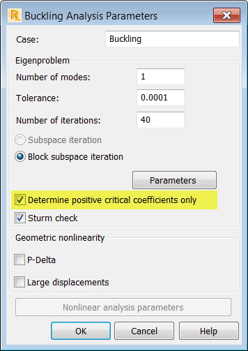 Determine positive critical coefficients only parameter has been added for the buckling analysis.