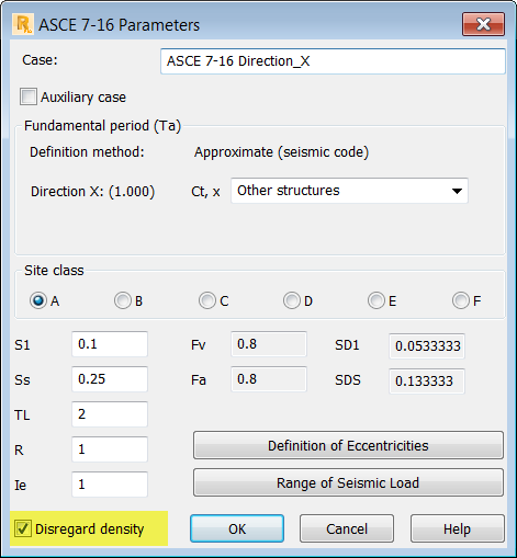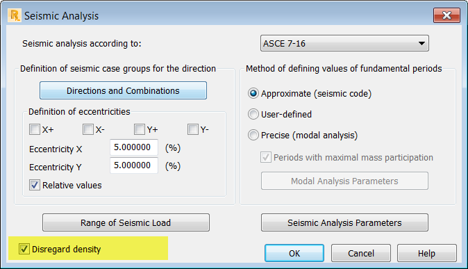 This parameter allows you to exclude the density of the structure element (ρ=0) during the dynamic analysis of the structure.
