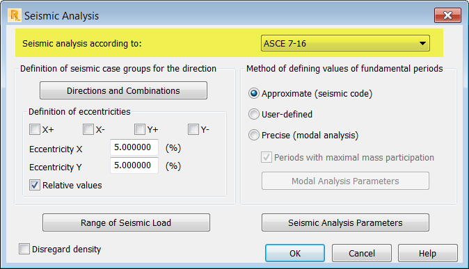 You can now set up a seismic analysis according to ASCE 7-16 for the following methods: