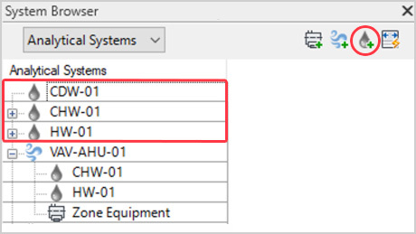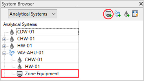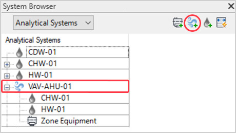 Use the tools in the System Browser to add zone equipment, air systems, and water loops.