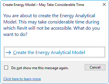 This dialog avoids the accidental initiation of the energy model creation process. To skip this message in the future, select the check box.