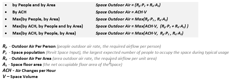 Building/Space Type Settings dialog to specify one of the following methods, which are calculated as shown below: