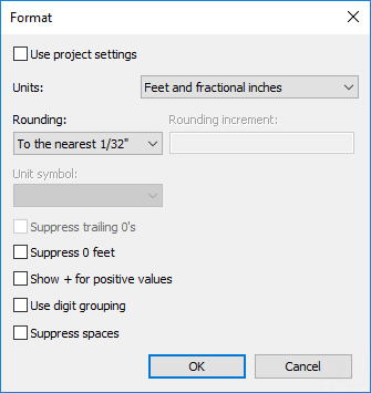 The Use project settings option is selected by default. This means that the value displays according to the Units setting in the project.