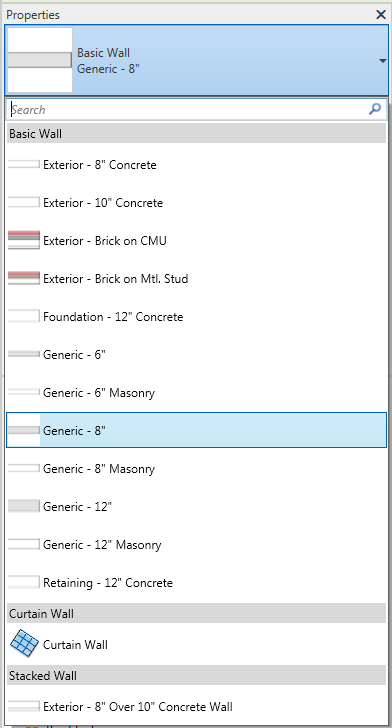 The Type Selector identifies the currently selected family type and provides a drop-down from which you can select a different type.