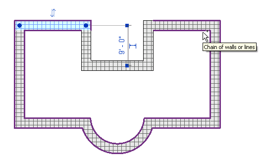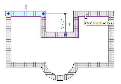 If multiple elements (such as walls and/or lines) are joined in a continuous chain, you can select part of the chain.