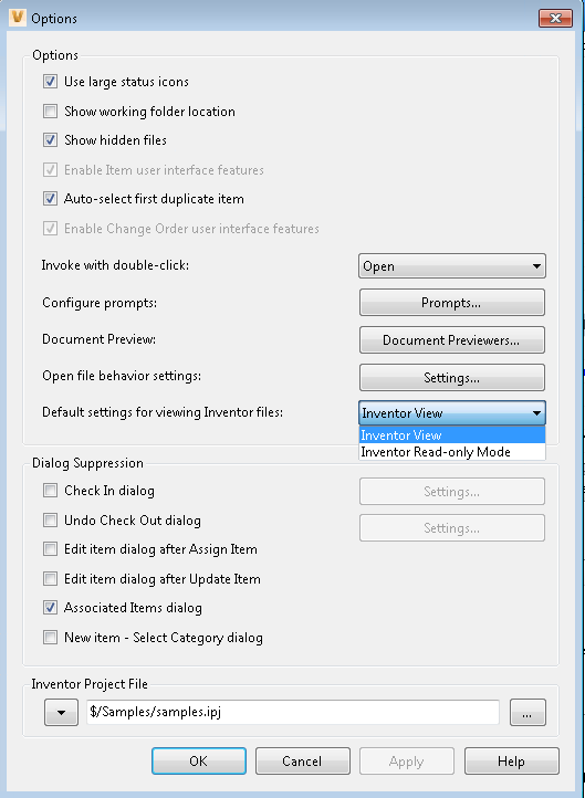 The Options dialog box in the Vault stand-alone client allows you to customize as well as streamline your workflow by suppressing certain dialog boxes and prompts.