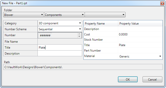 The Vault Data Standard dialog is available in Inventor and AutoCAD. Whenever you first save a file, the Data Standard dialog displays. Fill in the required fields and any additional fields set up by your administrator and click OK to save your data. The data is saved as a Data Sheet that can be modified in the future.