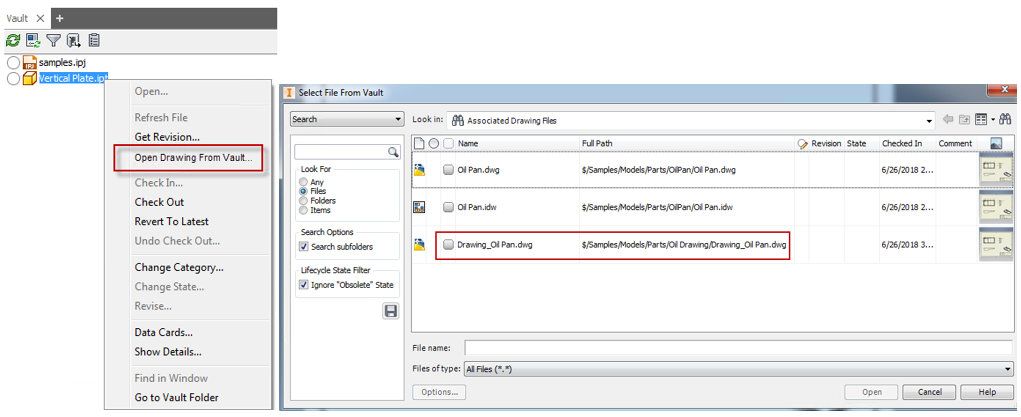 Vault 2019.1 update introduces a new command “Open Drawing from Vault” which helps the Inventor Designer to open the drawing of the design from Vault with a single command.