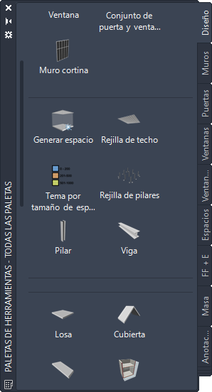 Las paletas personalizadas creadas por el administrador de CAD u otros usuarios también puede contener herramientas de rejilla de pilares estructurales con propiedades personalizadas para los proyectos o normas de su oficina.