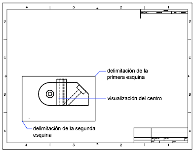 Una vez se ha designado el lado de la ventana gráfica que se desea utilizar para proyectar la nueva vista, una línea elástica corre perpendicular al lado de la ventana para ayudarle a ubicar el centro de la nueva vista.