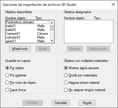 Crea una capa para cada objeto en el archivo 3D Studio y sitúa el objeto en esa capa. El nombre de la capa es el mismo que el nombre del objeto.