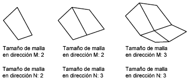 Al crear la malla, debe especificarse el tamaño de la misma en las direcciones M y N. El número total de vértices que indique para la malla será igual al valor M multiplicado por el valor N.