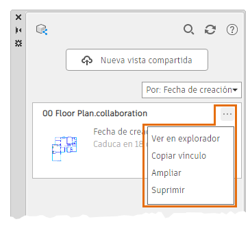 Muestra las vistas compartidas en el orden especificado: Fecha de creación, Título o Fecha de caducidad.
