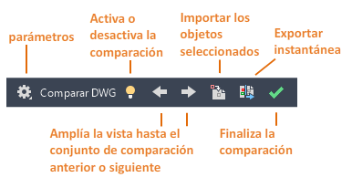 Cuando se inicia una operación de comparación, se muestra la barra de herramientas de Comparar DWG.