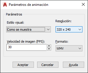 Precisa los parámetros para grabar una animación de navegación 3D.