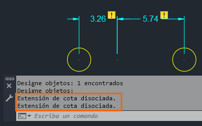 Cuando una cota se disocia, AutoCAD informa con uno de los siguientes mensajes en la solicitud de comando: