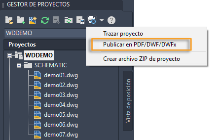 Utilice el botón Publicar/trazar en el Gestor de proyectos para imprimir el proyecto.