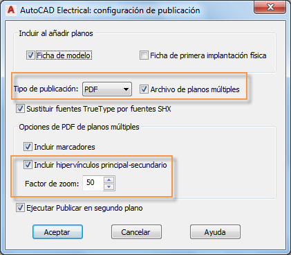 Asegúrese de seleccionar Archivo de planos múltiples e Incluir hipervínculos.
