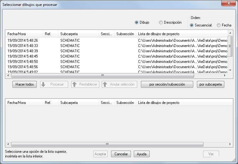 Después de seleccionar Trazar proyecto, puede seleccionar los dibujos del proyecto que desea trazar.