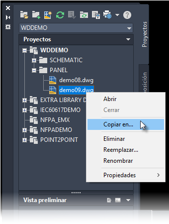 Utilice el Gestor de proyectos para copiar un único dibujo de cualquier proyecto abierto y añadirlo al proyecto activo.