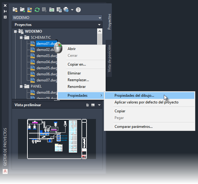 Es posible que existan dibujos que forman parte del proyecto pero que no desea que se procesen durante la ejecución de funciones de todo el proyecto. También es posible que no sean dibujos eléctricos, pero sean necesarios para el diseño completo. Puede definir estos dibujos como referencia solo en las propiedades del dibujo.