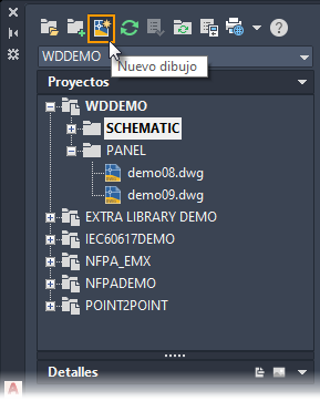Utilice la herramienta Nuevo dibujo para crear un dibujo. Al crear un dibujo en el Gestor de proyectos, este se añade al proyecto activo. Se añade al final de la lista de dibujos. Arrástrelo y suéltelo para cambiar el orden.