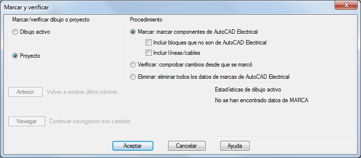 Si desea realizar un seguimiento de los cambios realizados en los dibujos, utilice el comando Marcar\verificar. Buscar