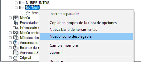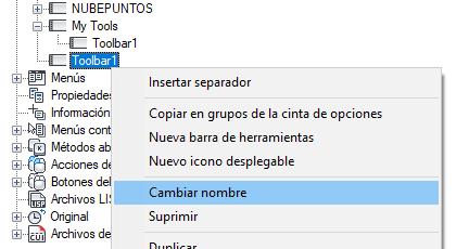 Se crea una nueva barra de herramientas (denominada Barra de herramientas1) y se incluye un nuevo icono desplegable que hace referencia a esta en la parte inferior de la barra de herramientas seleccionada.