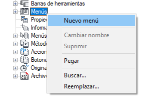 En la ficha Personalizar, en el panel Personalizaciones en <nombre de archivo>, haga clic en el signo más (+) que aparece junto al nodo Menús para expandirlo.