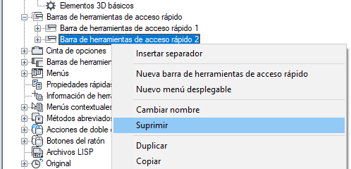 Supresión de una barra de herramientas de acceso rápido