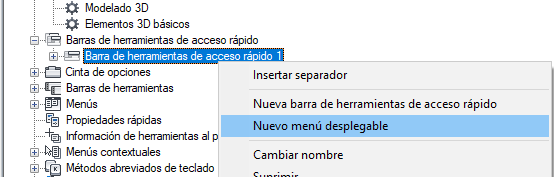 - Haga clic con el botón derecho del ratón en la barra de herramientas de acceso rápido a la que desea añadir un menú desplegable. Haga clic en Nuevo menú desplegable.