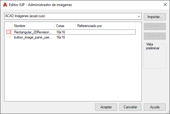 La imagen se añade a la lista de imágenes y al archivo de personalización de trabajo, y puede ya asignarse a un comando.
