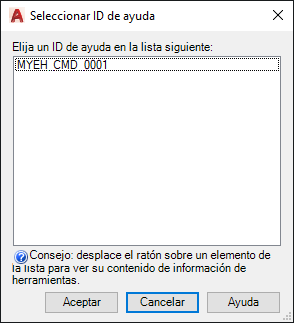 Cuando se añade el comando a una barra de herramientas o un grupo de la cinta de opciones, se muestra el contenido de la información ampliada de herramientas siempre que esté habilitada y que el cursor permanezca sobre el comando durante el periodo de tiempo designado.