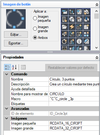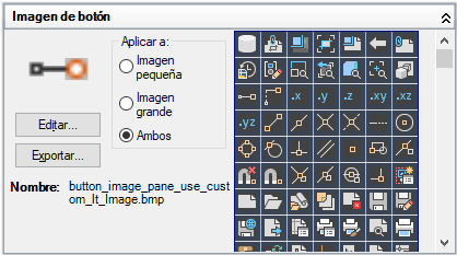 En el panel Imagen de botón, bajo Aplicar a, seleccione una de las tres opciones de asignación de imágenes: Imagen pequeña, Imagen grande o Ambas.