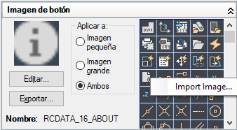 En el panel Imagen de botón, haga clic con el botón derecho en la lista de imágenes y seleccione Importar imagen.