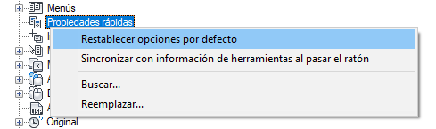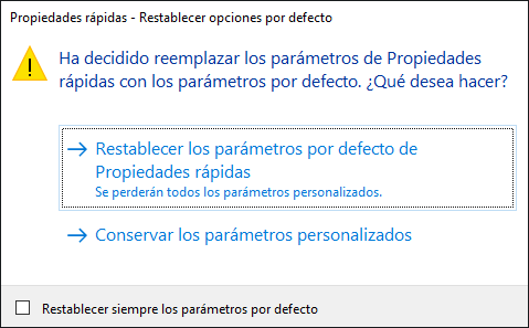 Restablecimiento de los parámetros por defecto de las Propiedades rápidas