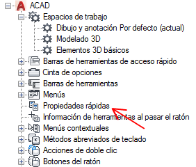 - En la ficha Personalizar, en el panel Personalizaciones en <nombre de archivo>, seleccione Propiedades rápidas.
