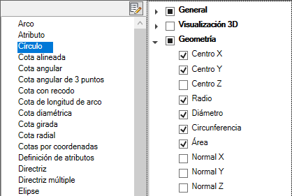 Si se activa un tipo de objeto, las propiedades correspondientes al mismo se mostrarán en la paleta Propiedades rápidas cuando se seleccione un objeto del mismo tipo, cuando QPMODE se haya establecido en 2 y cuando PICKFIRST esté activado. Desactive la casilla de verificación adyacente a un tipo de objeto para eliminar el tipo de objeto seleccionado de la paleta Propiedades rápidas.