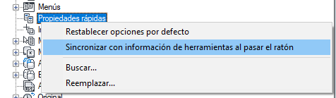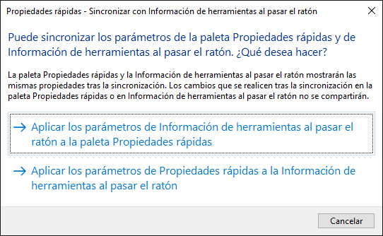Sincronización de las Propiedades rápidas con la información de herramienta al pasar el ratón