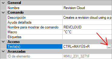 - En el panel Propiedades, haga clic en el cuadro Tecla(s) y, a continuación, haga clic en el botón […] para abrir el cuadro de diálogo Métodos abreviados.
