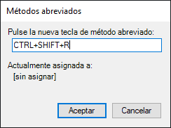 - Haga clic en Aceptar para asignar la combinación de teclas y cerrar el cuadro de diálogo Métodos abreviados.