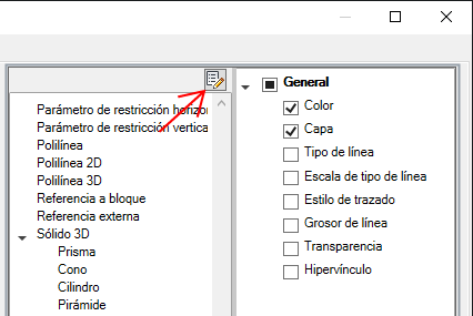 Cuando un tipo de objeto está activado, al colocar el cursor sobre un objeto del mismo tipo las propiedades correspondientes a ese tipo de objeto se muestran en una información de herramientas al pasar el ratón. Desactive la marca de verificación adyacente al tipo de objeto para desactivar la información de herramientas al pasar el ratón de ese tipo de objeto.