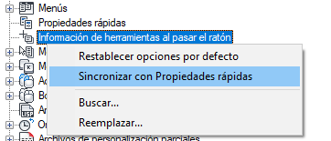 Sincronización de la información de herramientas al pasar el ratón con las Propiedades rápidas