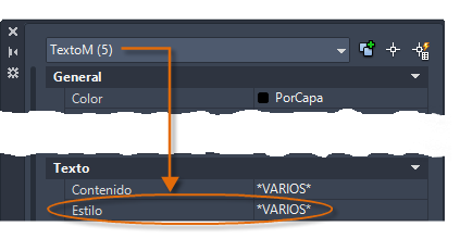 Al igual que otros elementos de anotación, el texto de líneas múltiples proporciona una gran cantidad de parámetros. Puede guardar estos parámetros como un estilo de texto mediante el comando ESTILO y, a continuación, acceder a los estilos de texto haciendo clic en la flecha de la lista desplegable del grupo Anotación. El estilo de texto actual se muestra en la parte superior de la lista desplegable.