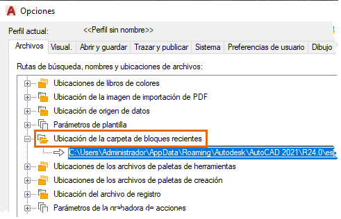 BLOCKSRECENTFOLDER: establece la ruta en la que se almacenan los bloques insertados o creados recientemente.