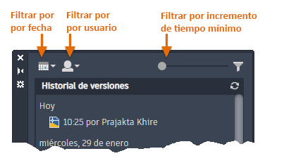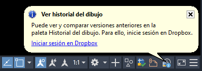 Si guarda archivos de dibujo en una cuenta de OneDrive, Dropbox o Box, se crean versiones adicionales de estos archivos de dibujo mientras trabaja, lo que genera un historial de versiones. Las versiones anteriores se mostrarán en la nueva paleta Historial del dibujo para que pueda compararlas con la versión actual del dibujo.