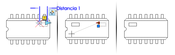Al asociar una acción de desplazamiento a un parámetro lineal, se desplazan todos los objetos de un conjunto de selección solamente en la dirección del parámetro lineal. El punto clave del parámetro es la ubicación del pinzamiento en la referencia a bloque.